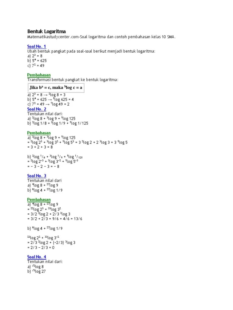 1) nyatakan logaritma berikut dalam bentuk pangkat. Contoh soal matematika logaritma latihsiswa. Berikut disajikan sejumlah soal dan pembahasan terkait fungsi eksponen (pangkat) yang dipelajari saat kelas x pada mata pelajaran matematika . Pembahasan matematika peminatan sma kelas 10 kurikulum 2013 lengkap dan gratis. Makalah fungsi logaritma dan grafik fungsi logaritma disusun oleh :
